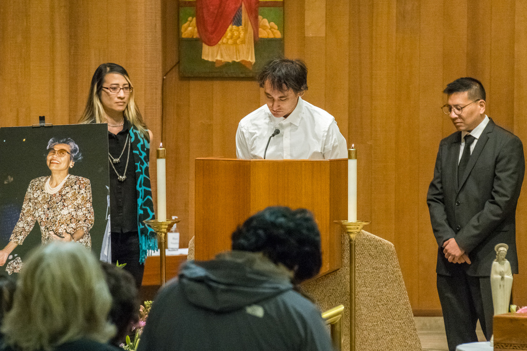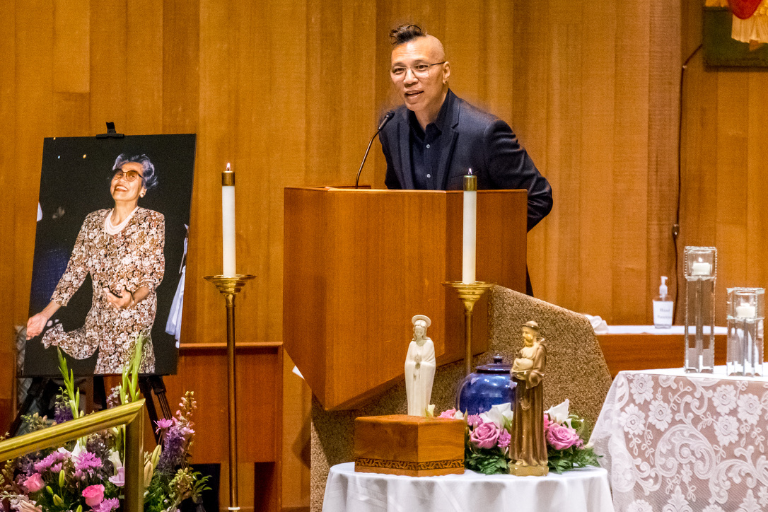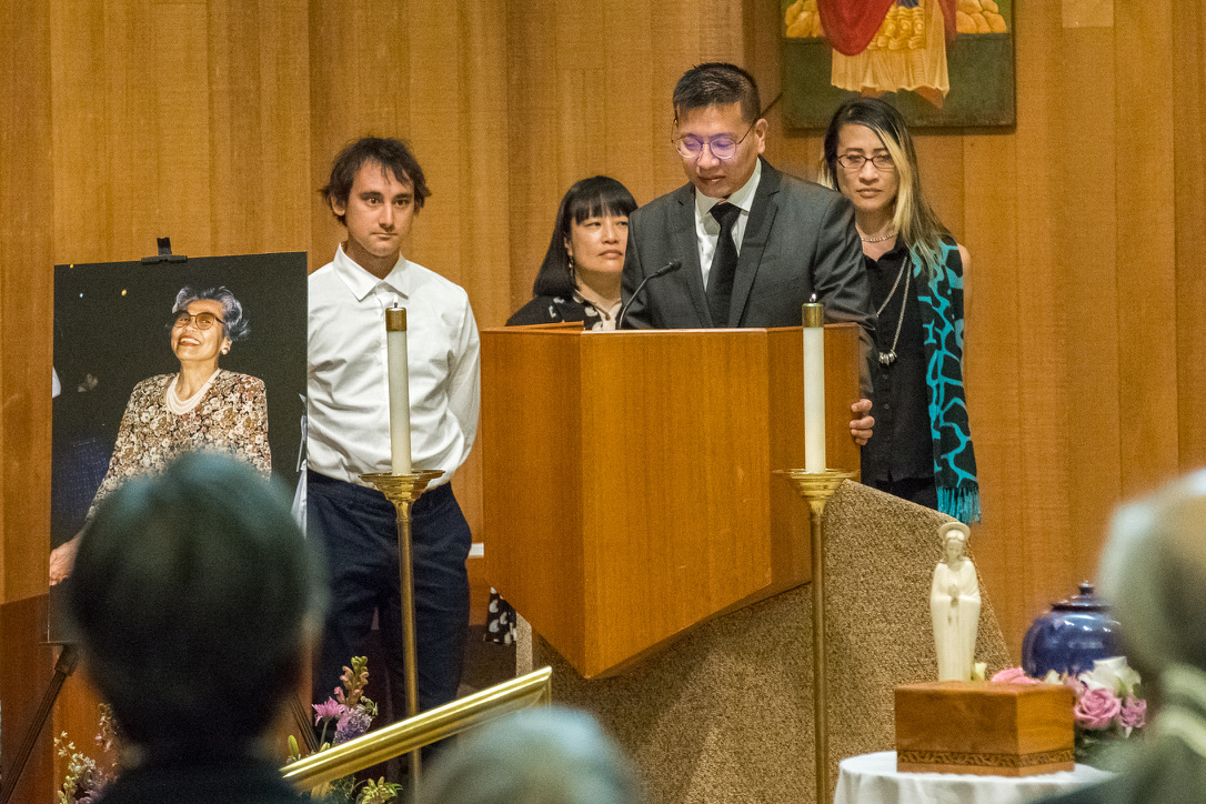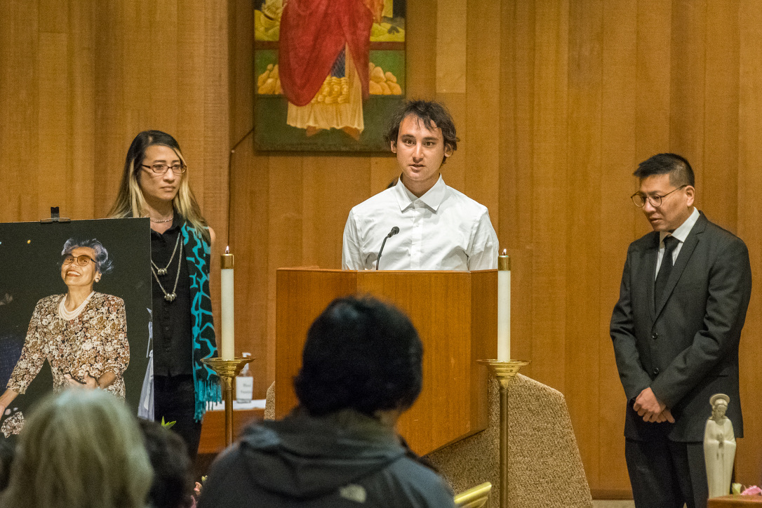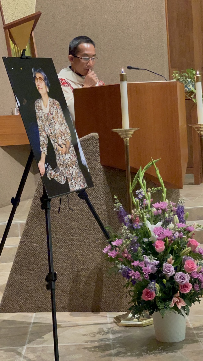 Three of Lola’s four children — Hilda, Bonnie, and Johnny — were present. This occasion also brought together all five of Lola’s grandchildren — Andrés, Gus, Tihani, Aimy, and Kevin, ages 11 to 44 — for the very first time. Each played a role in the service, and several offered passages and prayers.
