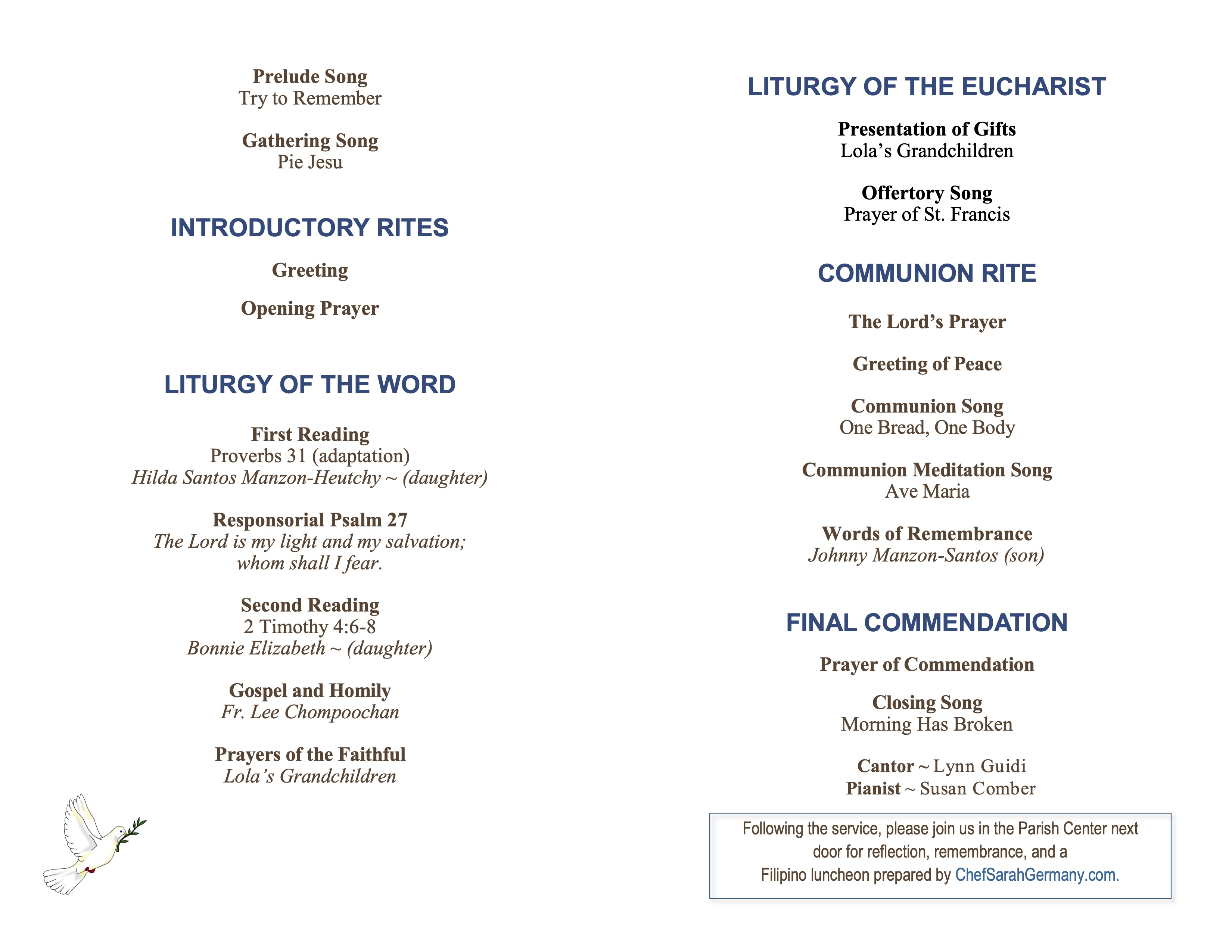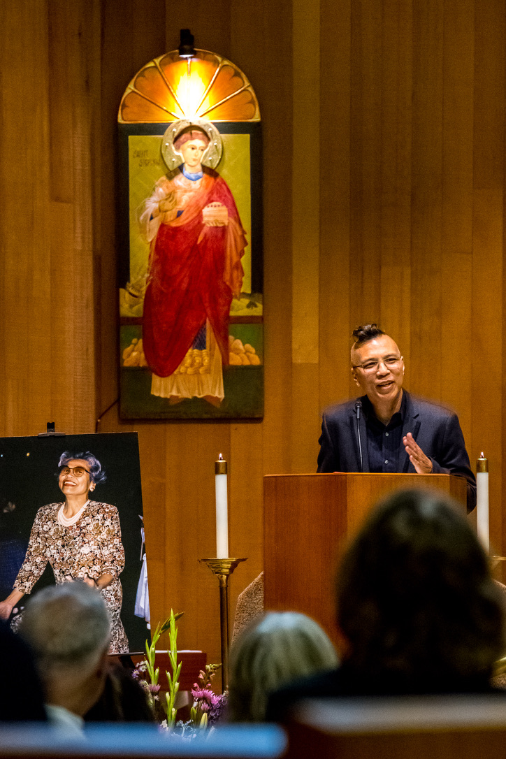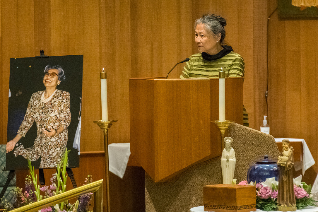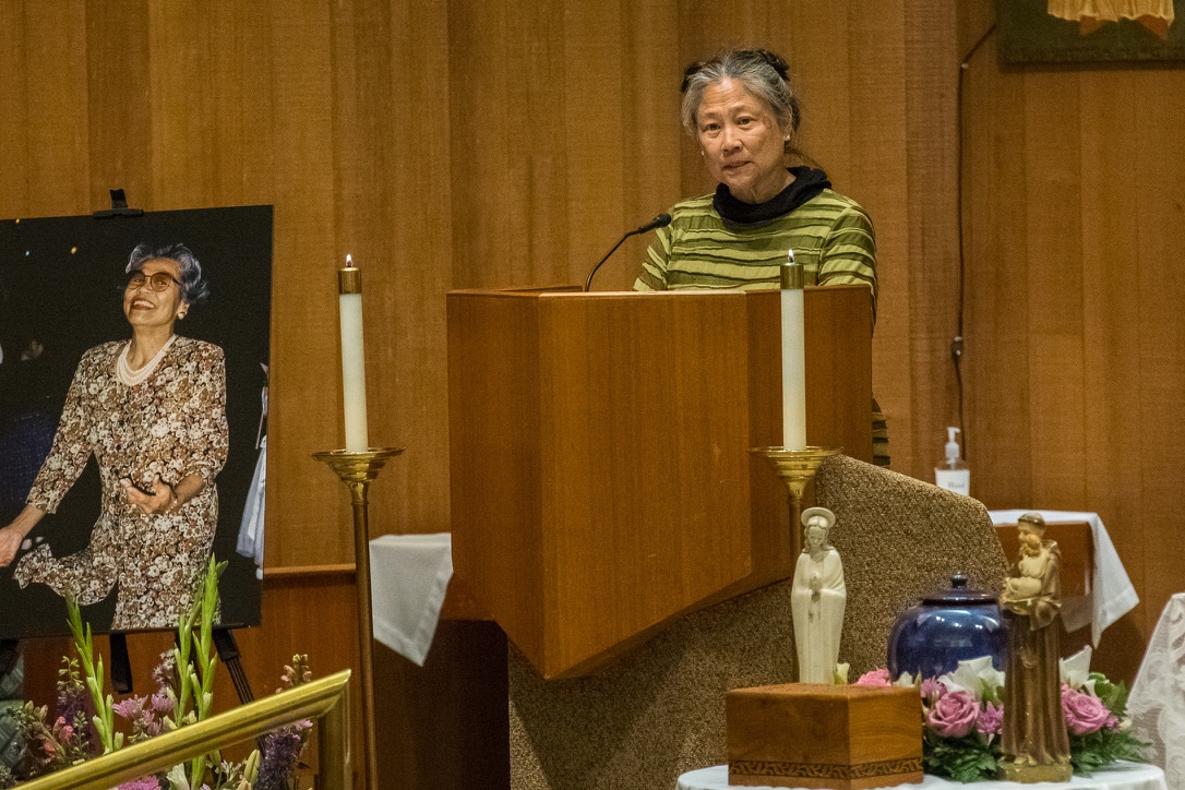Three of Lola’s four children — Hilda, Bonnie, and Johnny — were present. This occasion also brought together all five of Lola’s grandchildren — Andrés, Gus, Tihani, Aimy, and Kevin, ages 11 to 44 — for the very first time. Each played a role in the service, and several offered passages and prayers.